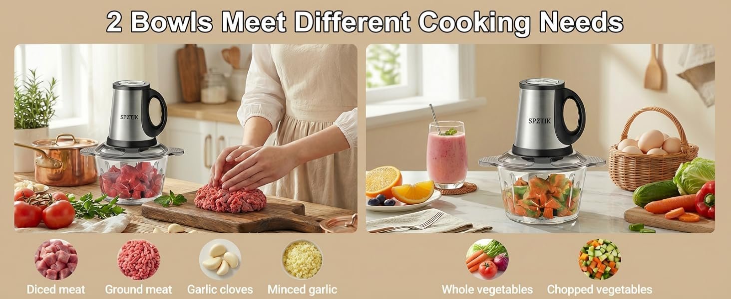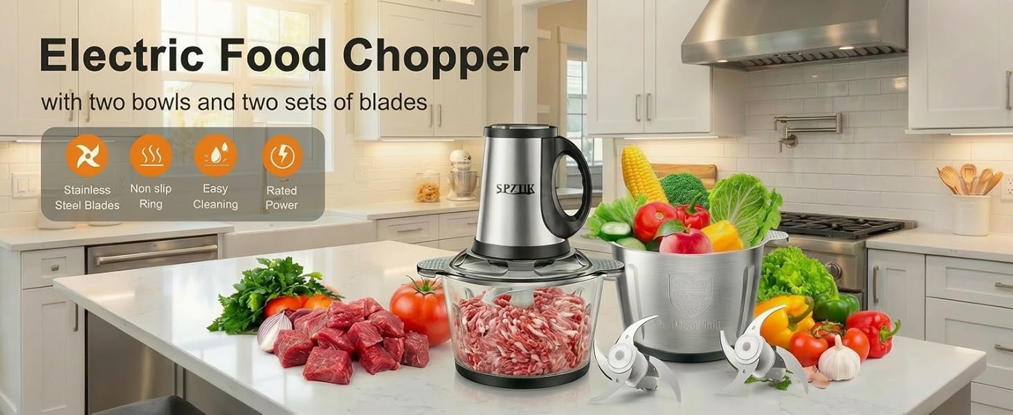 30 Bewertungen für SPZTJK Multifunktionaler Elektrischer Schneidroboter aus, Fleischhacker für den Hausgebrauch, Zerkleinerer Elektrisch,zwei Schüsseln(Edelstahls & Glass)und klingen,zum Zerkleinern und Hacken geeignet, Ideal für Gemüse, Knoblauch, Salat, Babynahrung